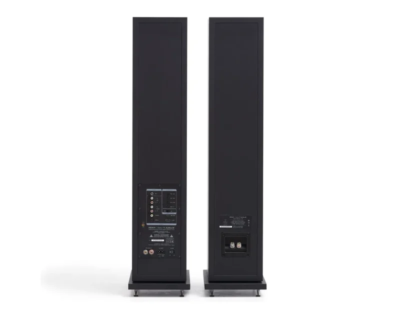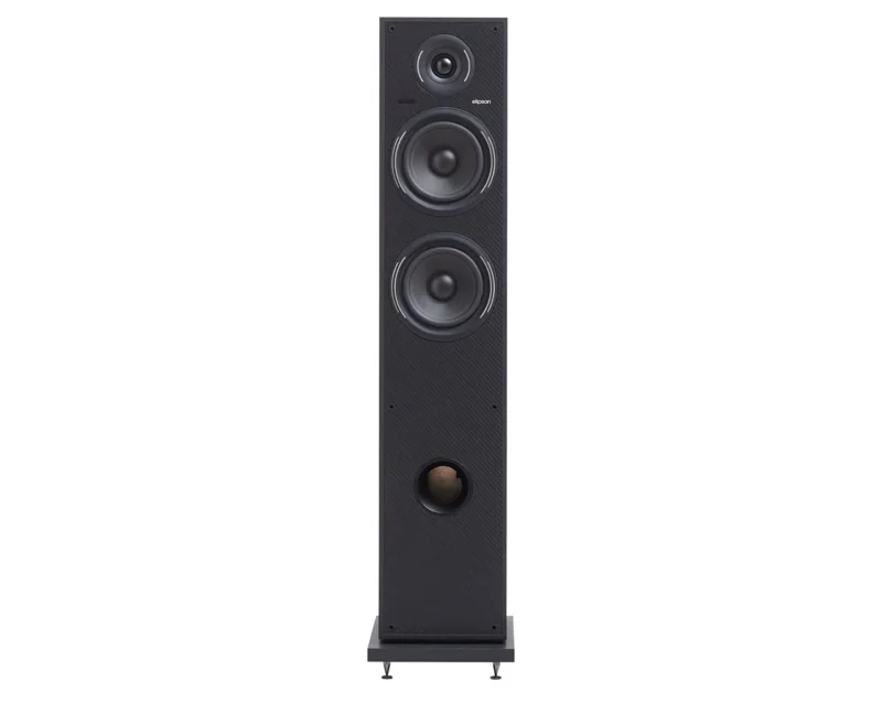 Elegantna vitka oblika in visokokakovostna zaključna obdelava omogočata, da se zvočnik harmonično poda tako v minimalistična kot klasična bivalna okolja. Njegova prednja bass-reflex odprtina omogoča optimalno reprodukcijo nizkih tonov tudi blizu stene, kar olajša postavitev v manjših prostorih ali stanovanjih.