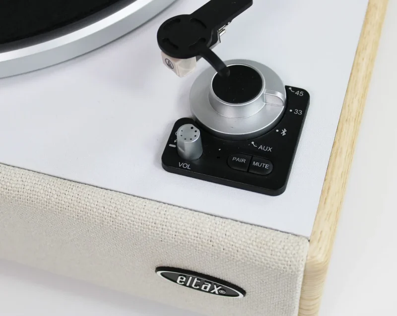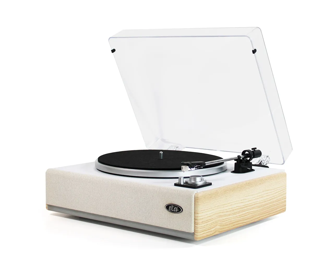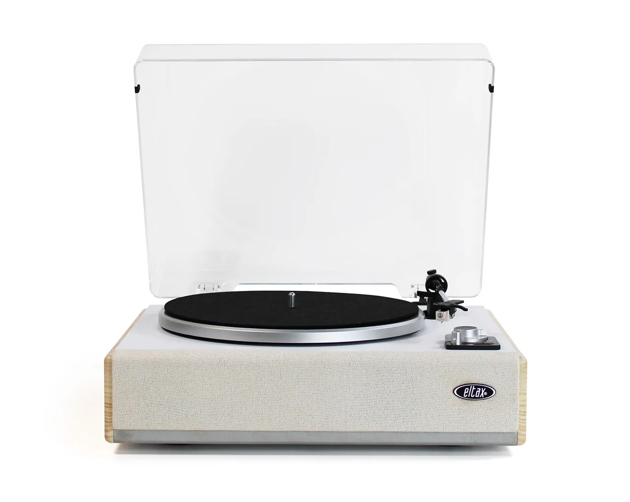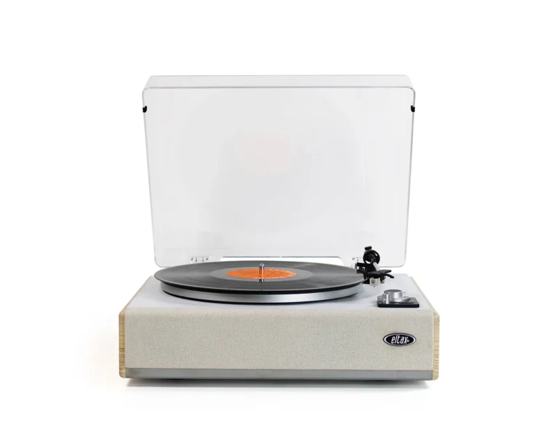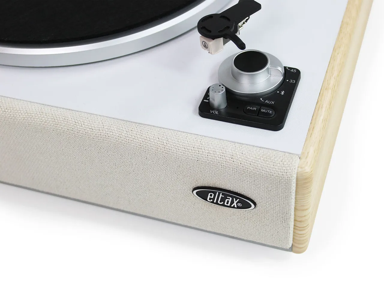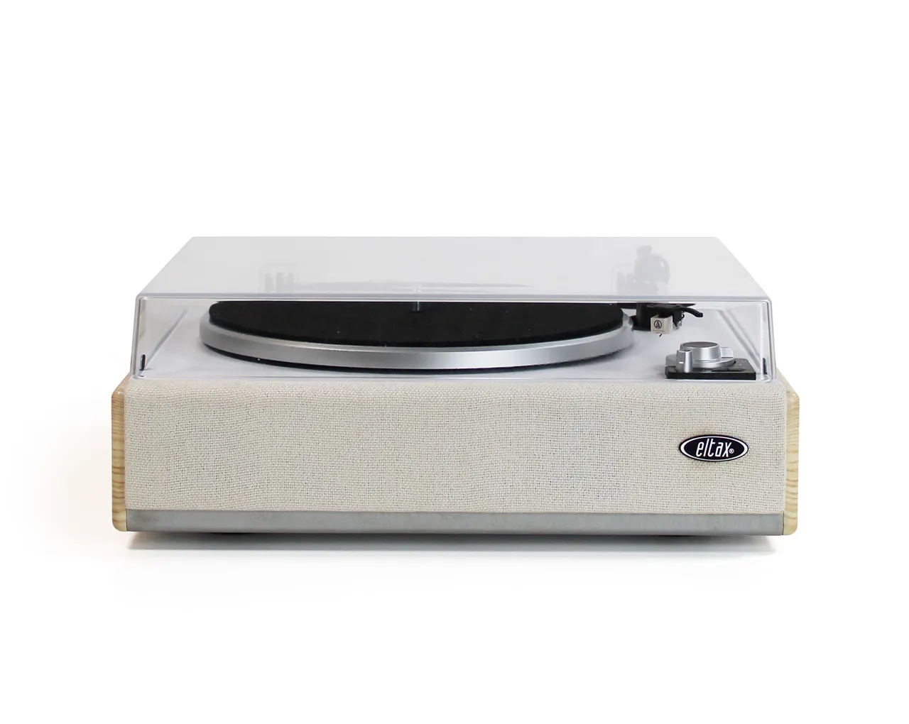Eltax Spinster je eleganten all-in-one gramofon z vgrajenimi stereo zvočniki, ki omogoča preprosto in pristno poslušanje vinilnih plošč.