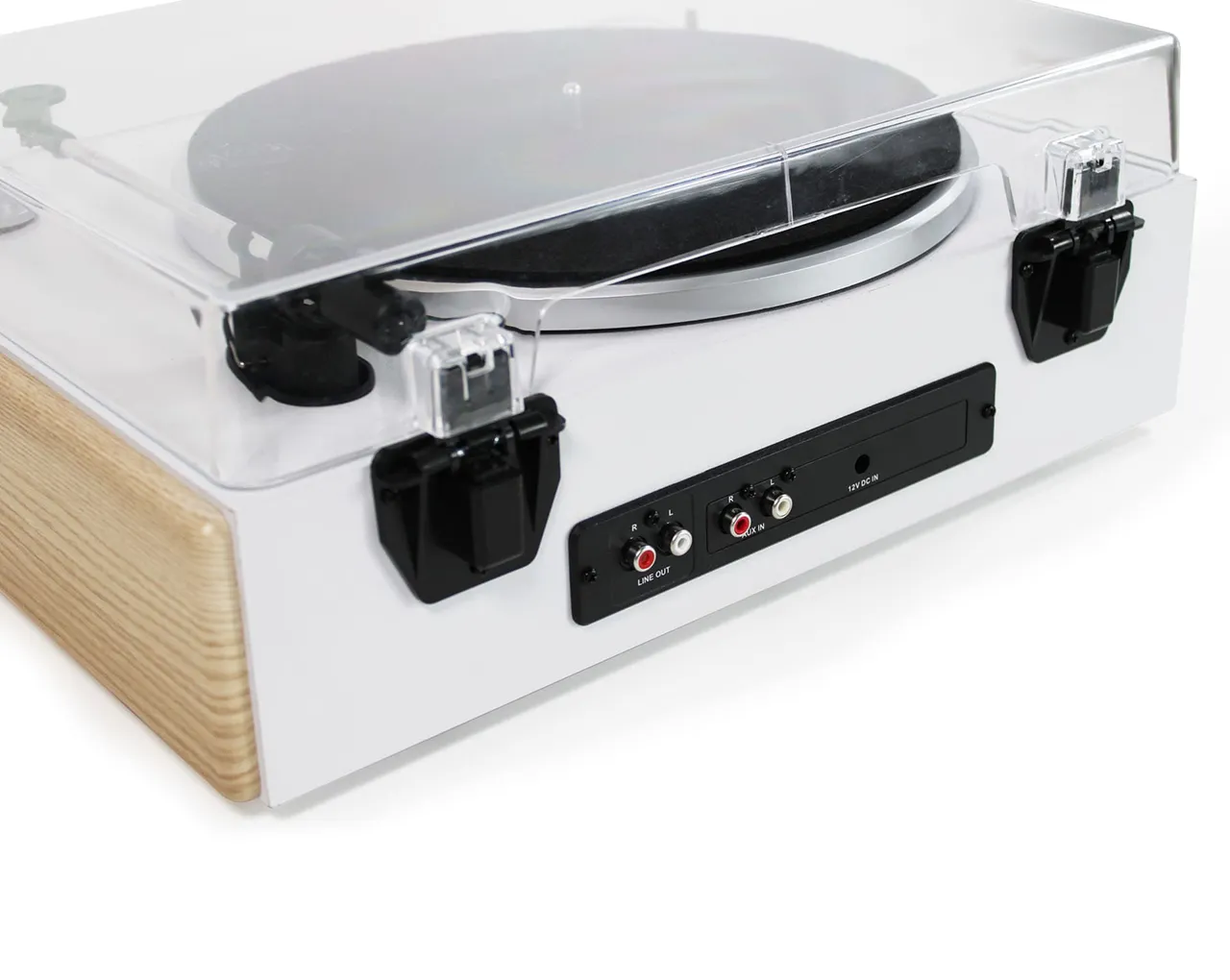 Spinster združuje gramofon in stereo zvočnike v eni napravi, zato dodatni ojačevalnik ali zvočniki niso potrebni.