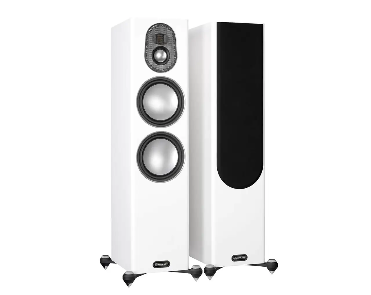 Zvočnik Monitor Audio Gold 300 je bil zasnovan za pravo avdiofilsko izkušnjo. Vrhunska tehnologija zvočnikov, vzeta iz prestižnih zvočnikov Platinum II, je bila združena z vodilno konstrukcijo ohišja v razredu, da bi ustvarilia zvočnik, ki je zasnovan za vse življenje. Zvočnik Monitor Audio Gold 300 je vrhunec ponudbe podjetja Monitor Audio. V njegovem velikem ohišju je nameščen 2½” (64 mm) gonilnik srednjega tona C-CAM z visokofrekvenčnim pretvornikom MPD zgoraj in par 8″ (203 mm) bas zvočnikov RDT II spodaj, v pravi tristezni postavitvi . Gold 300 je idealen zvočnik za večje prostore, saj ima tudi par nazaj obrnjenih vrat HiVe II, ki zagotavljajo gladek pretok zraka in izdatno ojačitev nizkih tonov. Njegova udarnost in dinamičnost se ujemata le s subtilnostjo in zvestobo – lahkotna avtoriteta Gold 300, od jasnih 50 kHz na vrhu do zemeljskih 30 Hz na dnu, ga naredi popolnega za vse zahteve poslušanja.