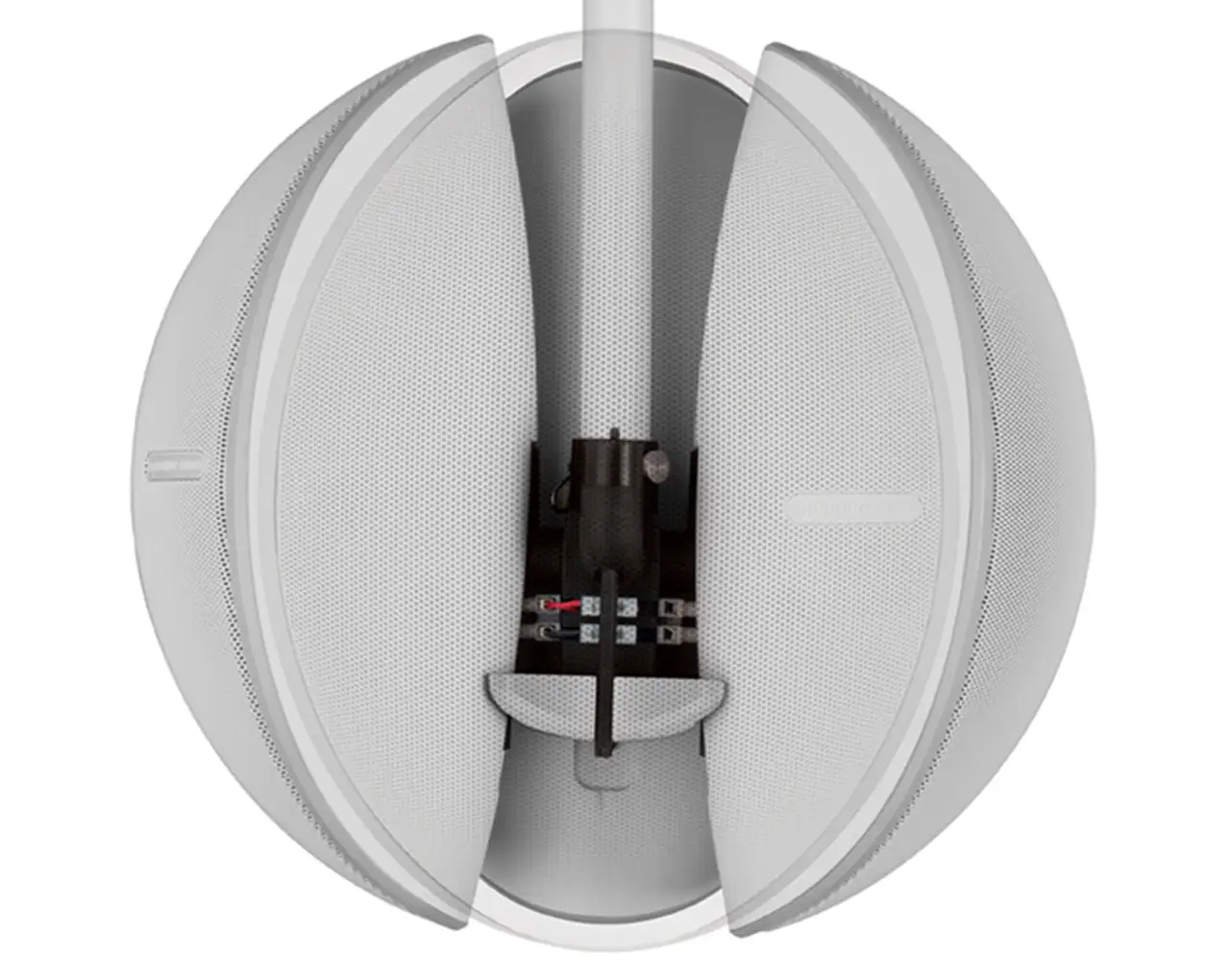 Nosilec je vnaprej ožičen, pritrditev pa je zaključena z vijakom z eno točko, ki pritrdi vsak zvočnik na svoje mesto.