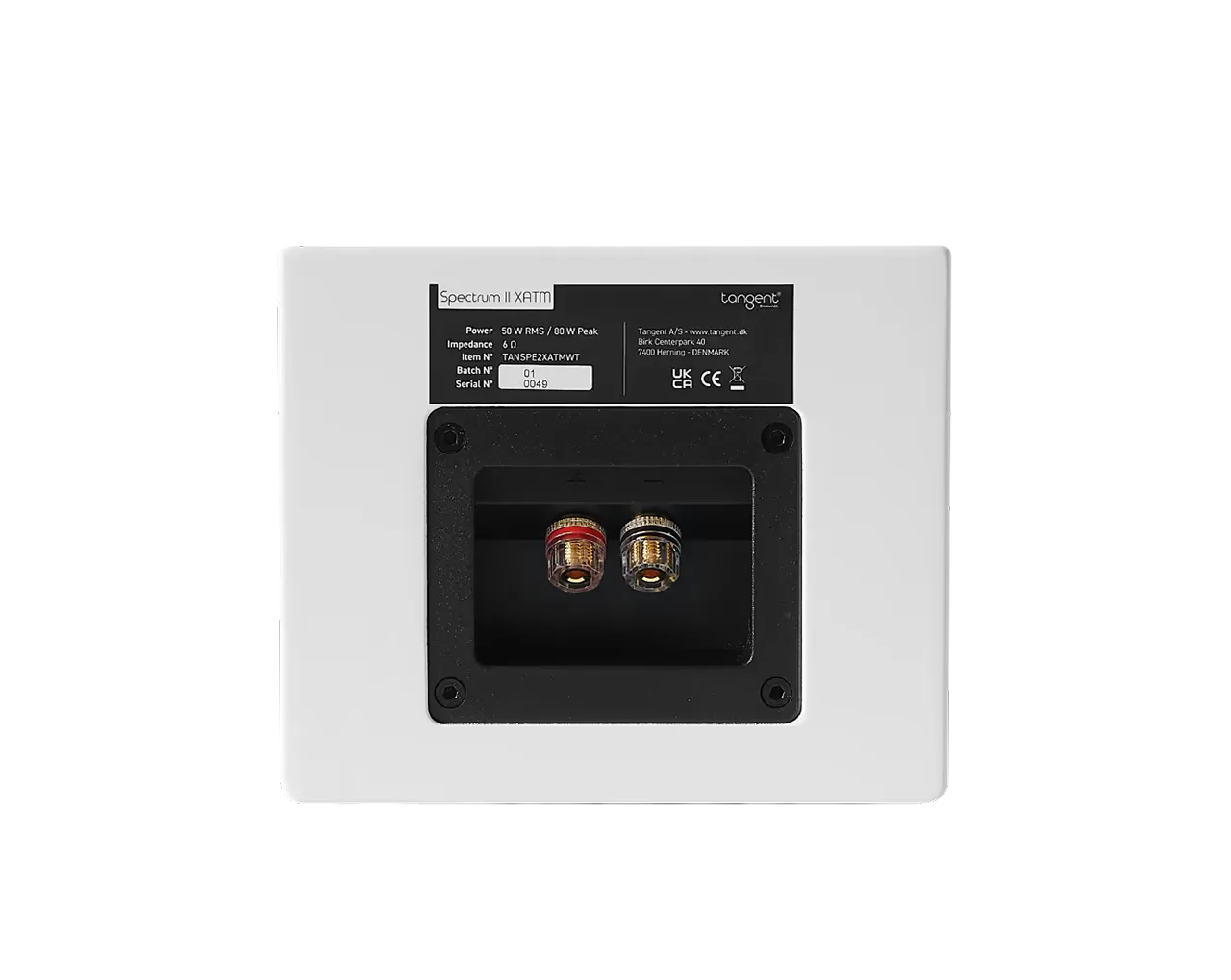 Spectrum II XATM je zasnovan kot dodaten zvočnik za sisteme, kot so Tangent Spectrum X5 in X6, in funkcionalno postavljen na vrh zvočnikov ali za montažo pod strop. Doda vertikalno dimenzijo zvoka, ki ustvarja resnično potopitveno izkušnjo — idealno za Dolby Atmos in DTS:X vsebine.