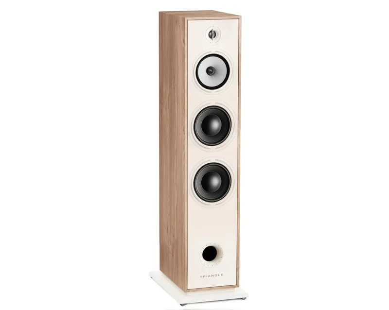 Triangle Borea BR10 naredi fizično sliko najboljših high-end sistemov. Kar dve 21 cm bas membrani z veliko bas reflex odprtino spredaj, omogočajo nižine do 30Hz. In to ne samo na papirju, temveč zalo glasno in tresoče v prostoru. 16 cm srednjetonec bo poskrbel za popolnoma čiste vokale, mehak visokotonec za prijetno neutrujajoč zvok tudi ob daljših seansah.