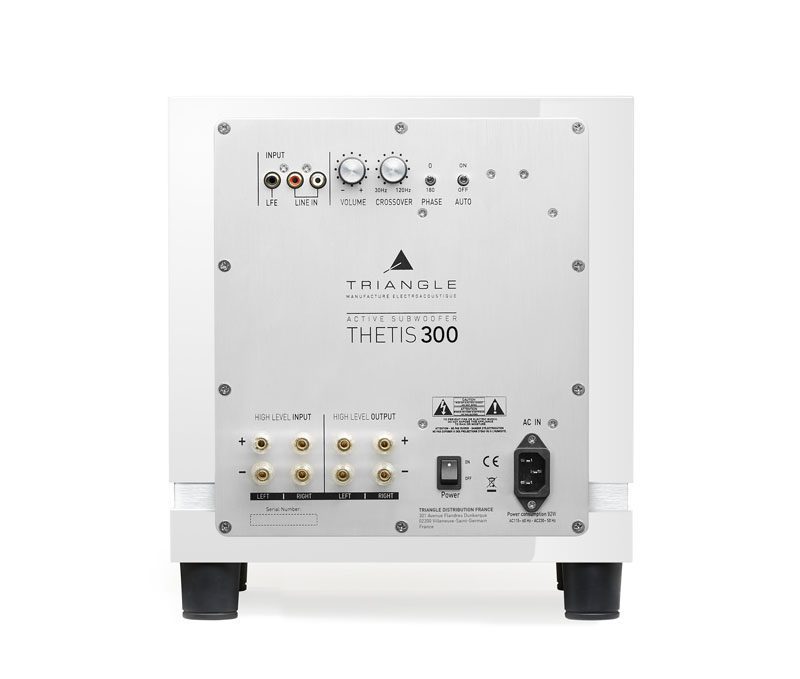 Triangle thetis 300 se uvršča med odlične HiFi aktivne nizkotonce. Na novo razvita bas membrana z ultra dolgim hodom, je izredno natančna in usmerjena v tla. Globino doda posebej preračunana bas refleksna odprtina podolgovate oblike na dnu ohišja. Obogatil bo vsak stereo sistem ali hišni kino, kjer bodo ljubitelji cenili natančnost in neverjetno globino basa glede na kompaktno ohišje s stranico samo 30cm. Spusti se do subsoničnih 32Hz in zna zelo kakovostno pomagati vašim zvočnikom tja do 120Hz.