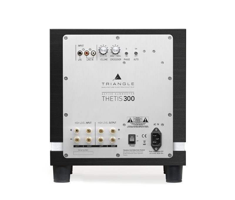 Triangle thetis 300 se uvršča med odlične HiFi aktivne nizkotonce. Na novo razvita bas membrana z ultra dolgim hodom, je izredno natančna in usmerjena v tla. Globino doda posebej preračunana bas refleksna odprtina podolgovate oblike na dnu ohišja. Obogatil bo vsak stereo sistem ali hišni kino, kjer bodo ljubitelji cenili natančnost in neverjetno globino basa glede na kompaktno ohišje s stranico samo 30cm. Spusti se do subsoničnih 32Hz in zna zelo kakovostno pomagati vašim zvočnikom tja do 120Hz.