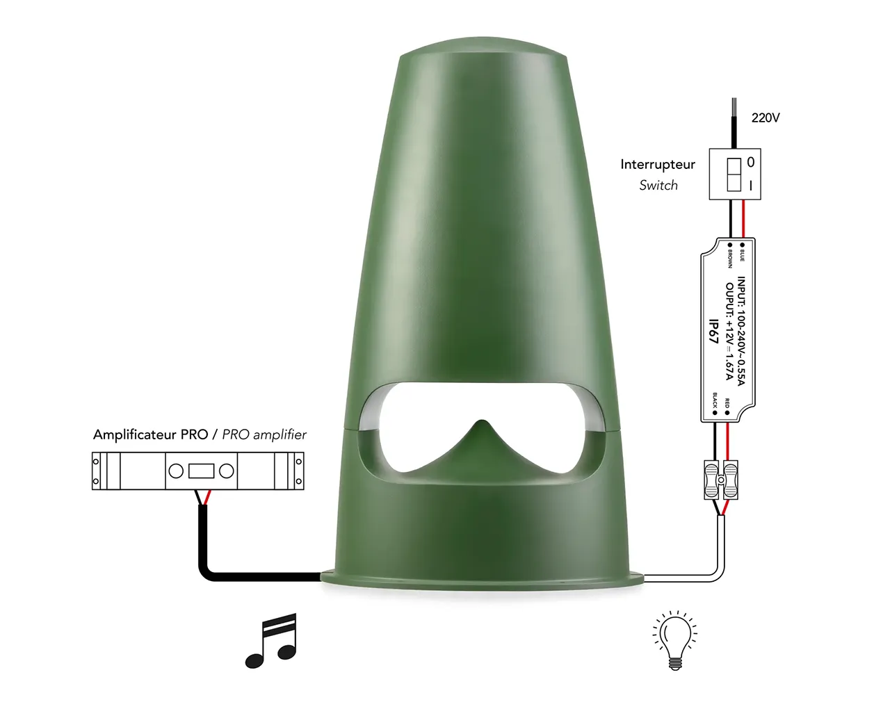 Njegova posebnost je 360-stopinjska difuzija zvoka: zvok je usmerjen proti stožcu na dnu, kar pomeni, da poslušalci ne rabijo biti neposredno pred zvočnikom, da bi dobili odlično izkušnjo – slušni učinek je enakomeren v celotnem prostoru.