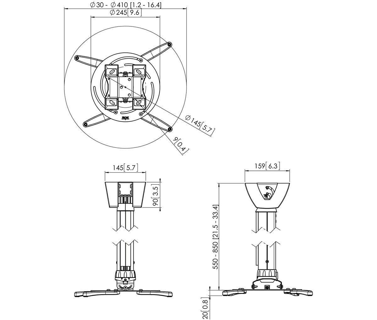 Vogels PPC 2555 je projektorski nosilec s prilagodljivo teleskopsko roko do teže 30kg.