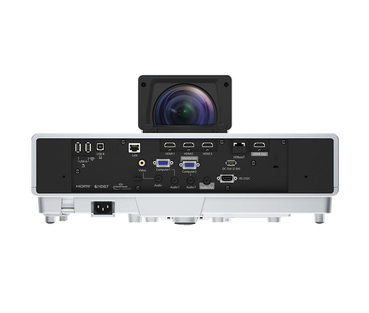 Medtem, ko je na steno nameščen televizor vedno na ogledu, lahko projicirana slika takoj izgine. Laserski projektor Epson EB-800F z zelo kratko projekcijsko razdaljo omogoča hitro namestitev blizu mesta prikaza slike in zagotavlja izjemno sliko v svetlih prostorih. Z dolgo življenjsko dobo laserskega vira svetlobe in podaljšano garancijo je cenovno zelo ugoden.