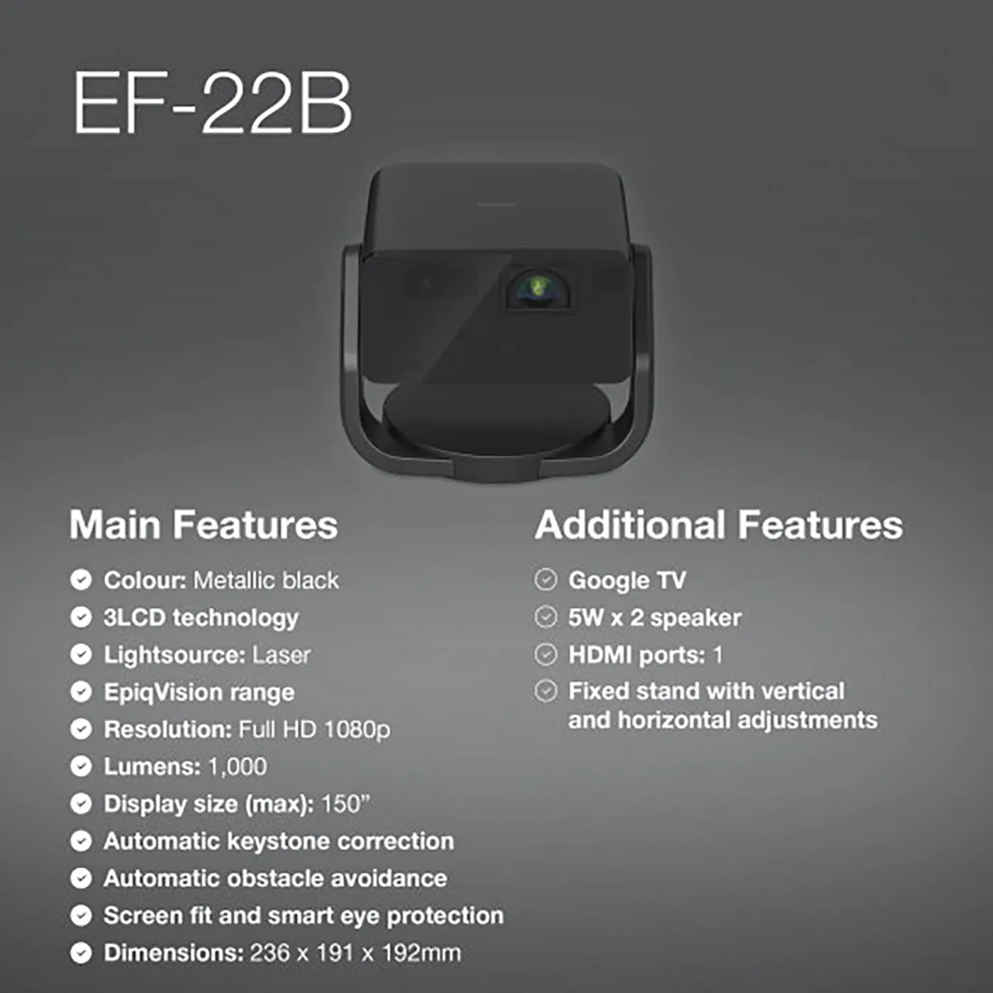 Če želite kombinacijo praktičnosti, pametnih funkcij in vrhunskega domačega razvedrila, je Epson EF-22B prava izbira.