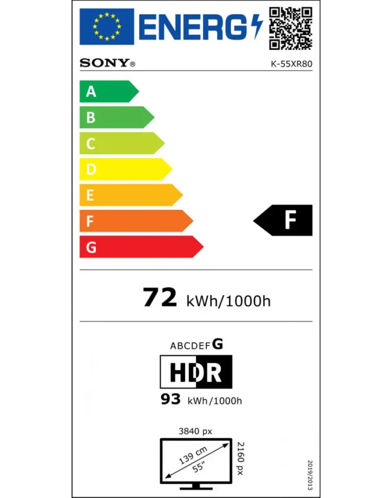 | Zaslon/slika | Diagonala: 139 cm (55″) Ločljivost: 4K Ultra HD (3840 × 2160) Zaslon in osvetlitev: LCD, OLED diode (QLED) Frekvenca plošče: 120 Hz Slikovni procesor: XR Processor Druge funkcije: XR Contrast Booster 15, XR TRILUMINOS PRO™, XR Clear Image, XR OLED Motion, živahno, standardno, kino, profesionalno, tiho, foto, IMAX Enhanced, Dolby Vision (Vivid/Bright/Dark/Game), FPS game, RTS game |